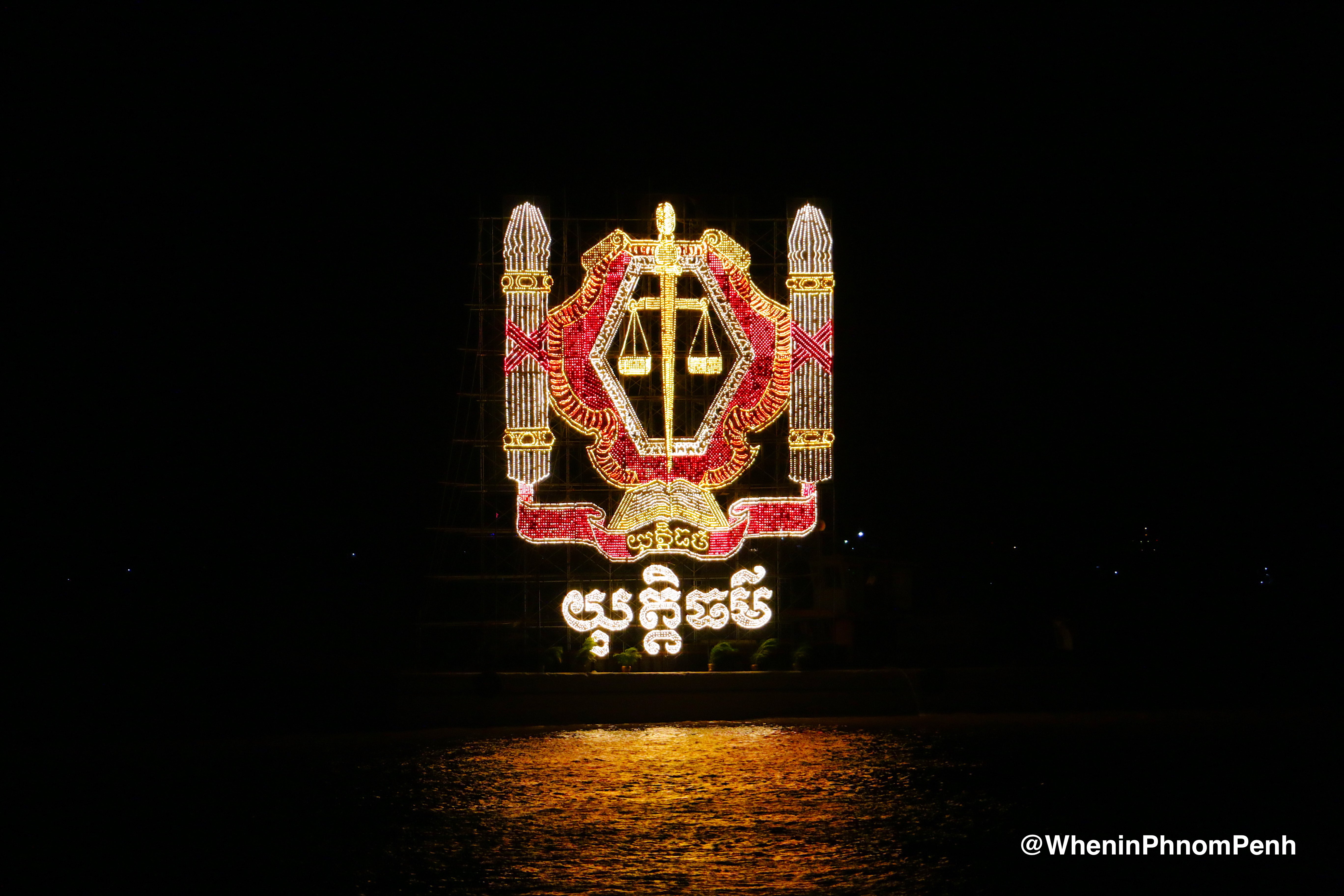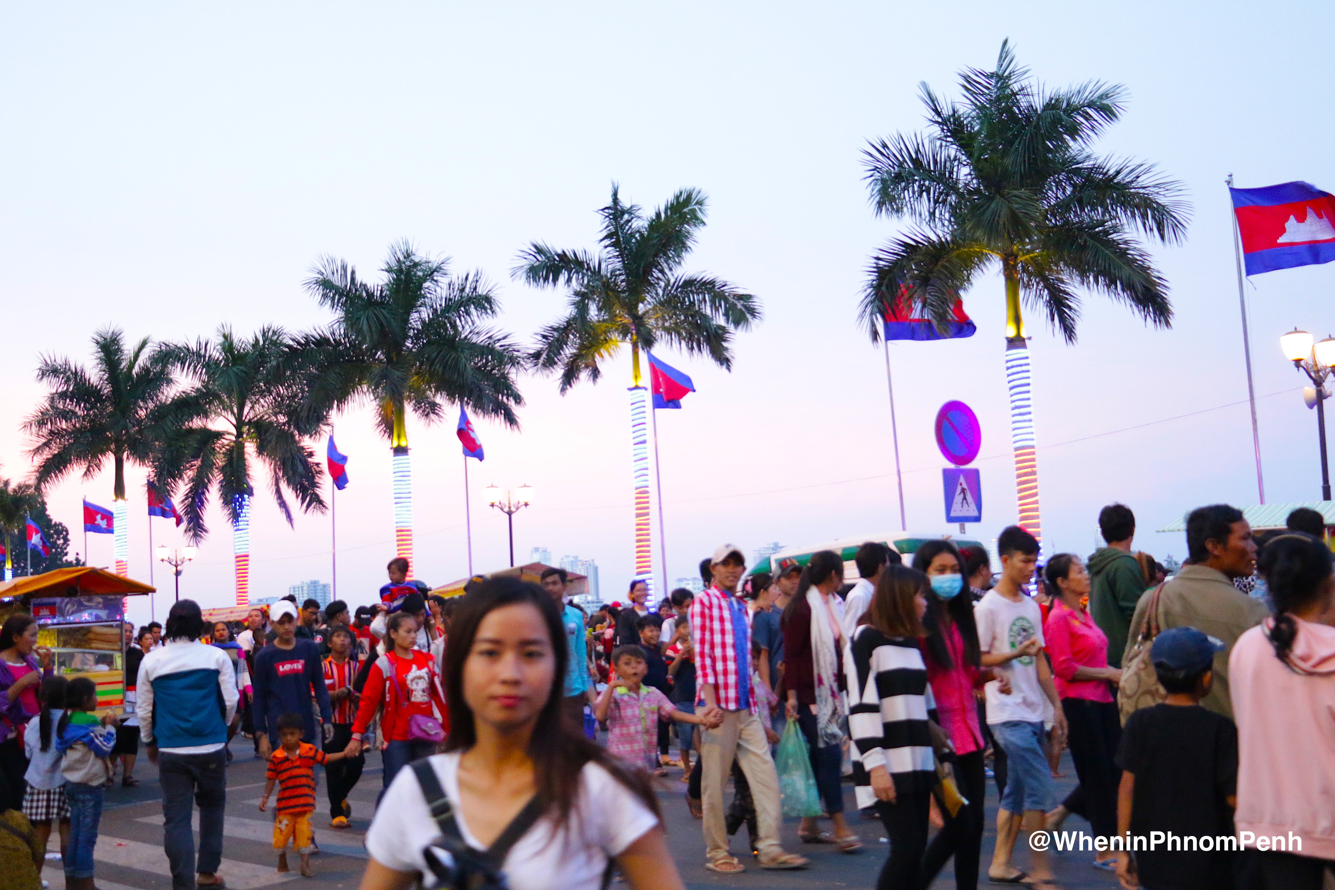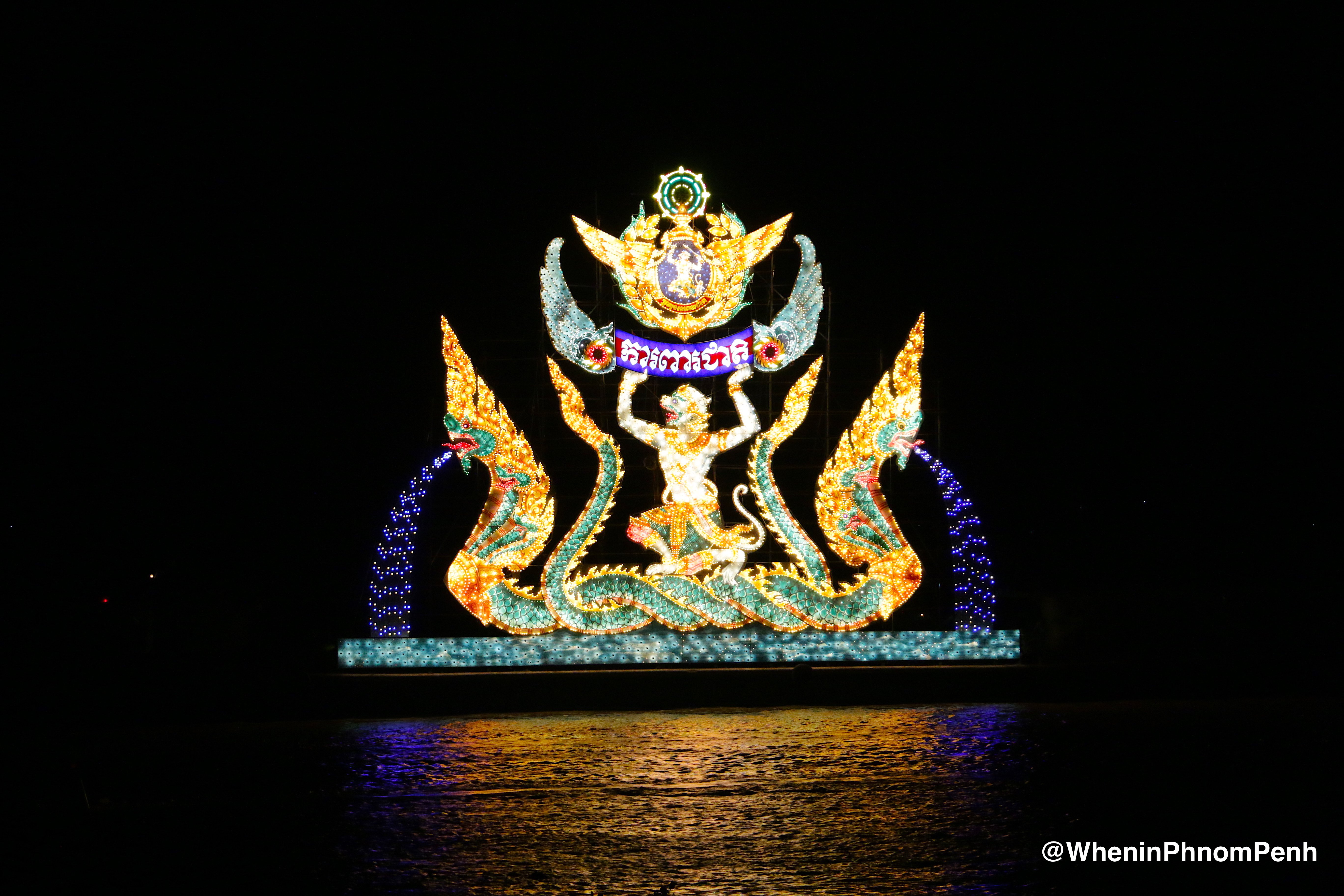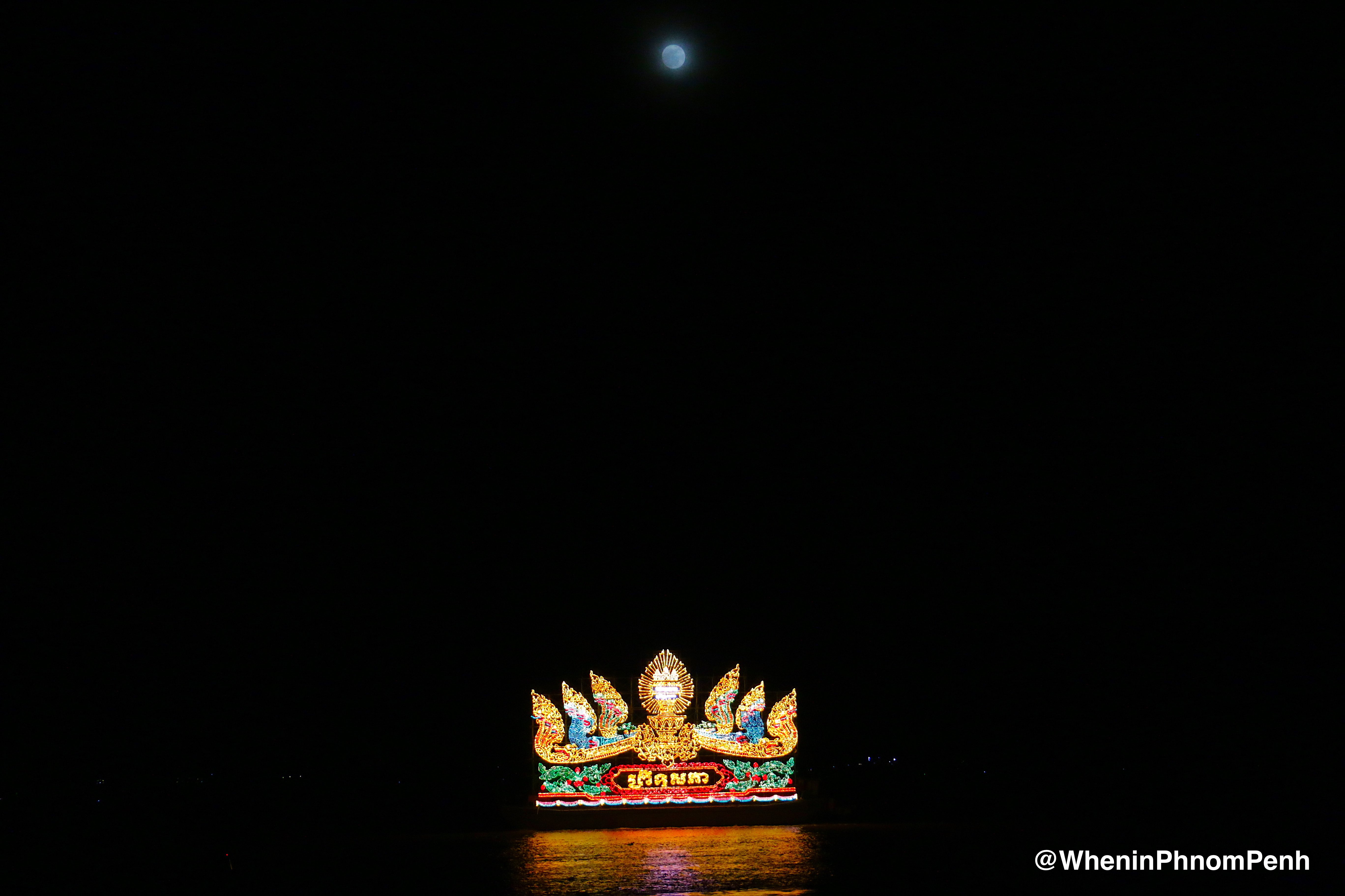 4. A couple watching a moving prateep or an illuminated float which says in Khmer “the Royal Palace”
