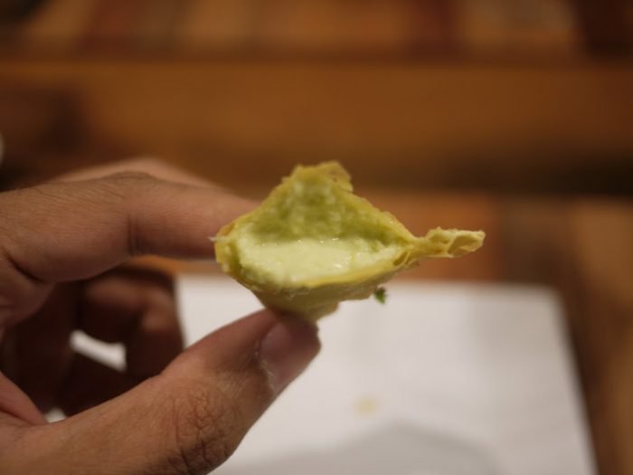 Kaffir lime broth, cauliflower puree,bok choy. pineapple chips