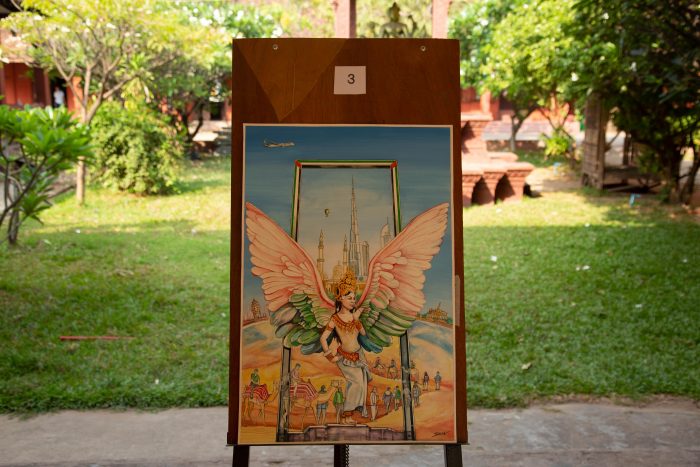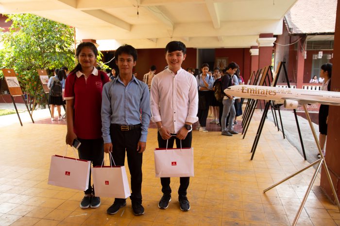 Under the theme of “Emirates Dream Destination”, a three-week long competition was held for its current enrolled students to submit artworks inspired by one of the 158 global destinations that Emirates flies to. Students were invited to illustrate a specific landmark or destination in their chosen medium and 12 art pieces, comprising oil paintings, drawings and other forms of art expression were exhibited. The three winners of the art contest were Chren Cheysak, Bun Hai and Soeung Sarlita, all architecture students studying at RUFA.
