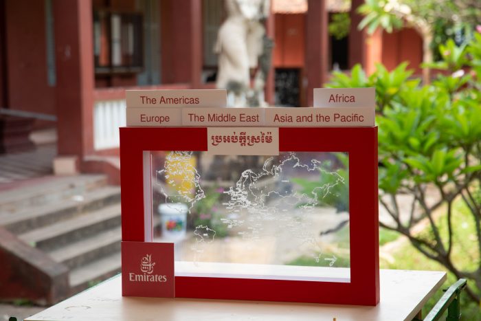 Chren Cheysak created an art piece featuring a collage of destinations that Emirates flies to highlighted by its iconic aircraft. His art piece showcased the Burj Khalifa at its centre, symbolising Emirate’s hub city of Dubai, while monuments around the world including the Eiffel Tower, Taj Mahal, Angkor Wat, amongst others, represented select destinations from its global network.